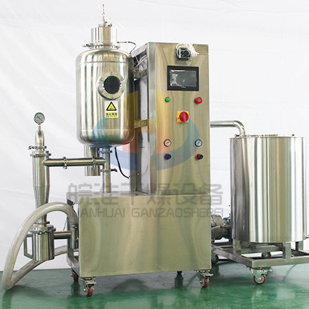 1、噴霧干燥整個實驗過程在真空環境里完成,大大降低了物料干燥溫度,解決了熱敏性物料噴霧干燥的難題。